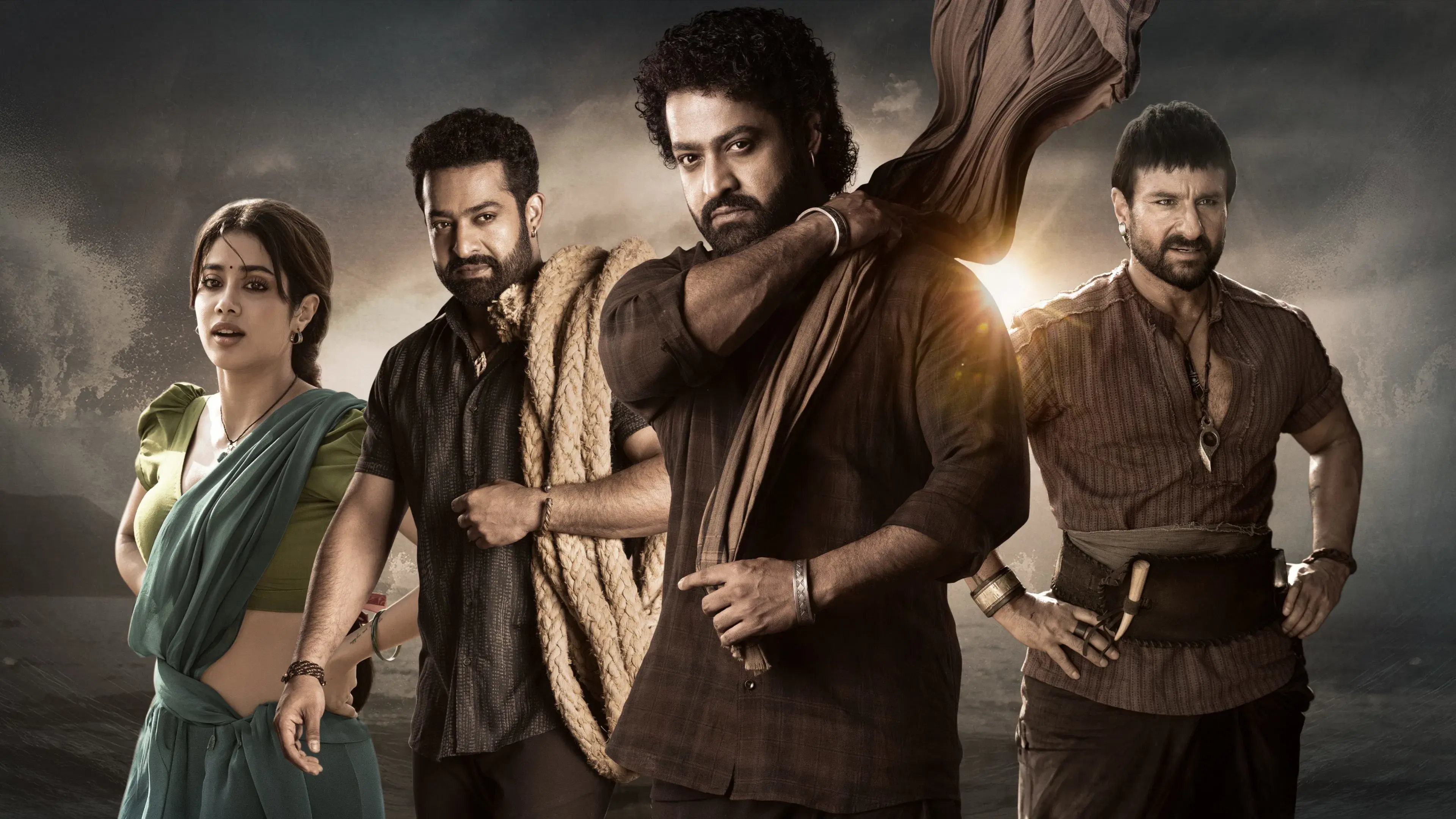 N.T. Rama Rao Jr., Saif Ali Khan, Prakash Raj, Srikanth, Kalaiyarasan, Shruti Marathe, Janhvi Kapoor, Shine Tom Chacko, Ajay, Zarina Wahab, Narain, Murali Sharma, Abhimanyu Singh, Rameshwari Talluri, Sudev Nair, Tarak Ponnappa, Sana, Getup Srinu, Hari Tej